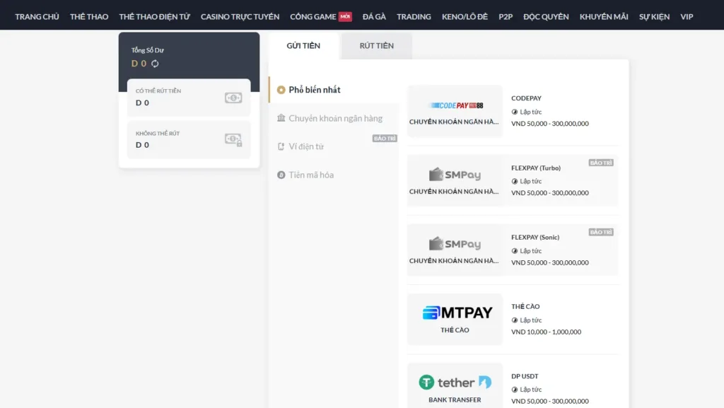 Dưới đây là những phương thức rút tiền phổ biến và các lưu ý quan trọng khi giao dịch tại nhà cái này.