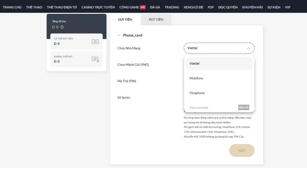 MI88 có thu phí giao dịch khi nạp hoặc rút tiền không?