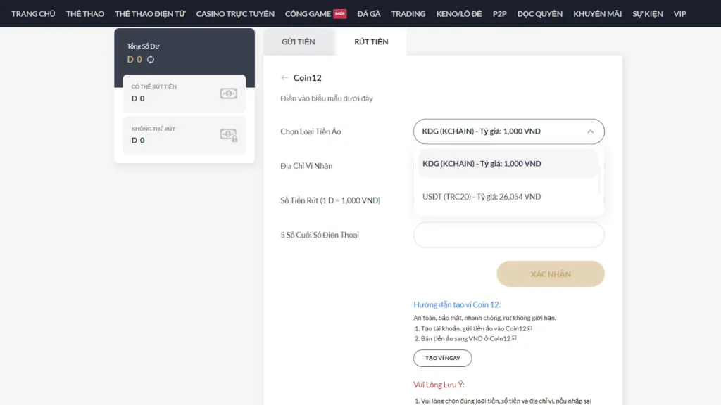 Nhập địa chỉ ví của mình (ví dụ: BTC, ETH, USDT…), xác nhận số tiền cần rút, sau đó đợi hệ thống duyệt. Ngay khi giao dịch được xác nhận, tiền sẽ tự động chuyển về ví của bạn.